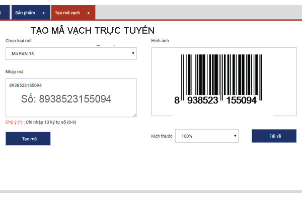Bước 2: Tạo mã vạch cho sản phẩm online